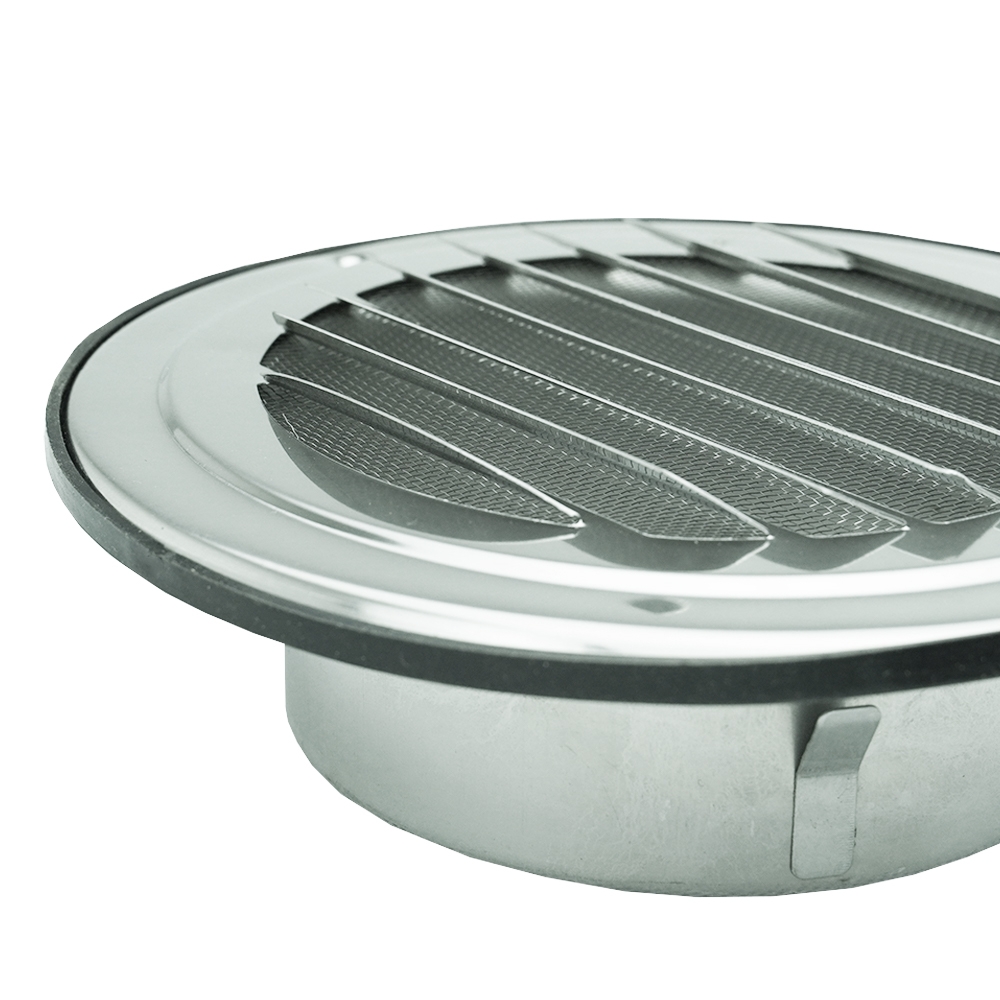 Nerezová větrací mřížka Ø 125 mm s přírubou a síťkou proti hmyzu je spolehlivým řešením pro zakončení ventilačních potrubí nebo větracích otvorů. Je vyrobena z vysoce kvalitní nerezové oceli, která odolává korozi, povětrnostním vlivům i vysokým teplotám. Pevné horizontální žaluzie se sklonem zajišťují efektivní proudění vzduchu a chrání systém před deštěm. Síťka proti hmyzu brání vniknutí drobných nečistot a hmyzu. Díky přírubě Ø 125 mm je montáž snadná a rychlá – bez nutnosti speciálního nářadí.