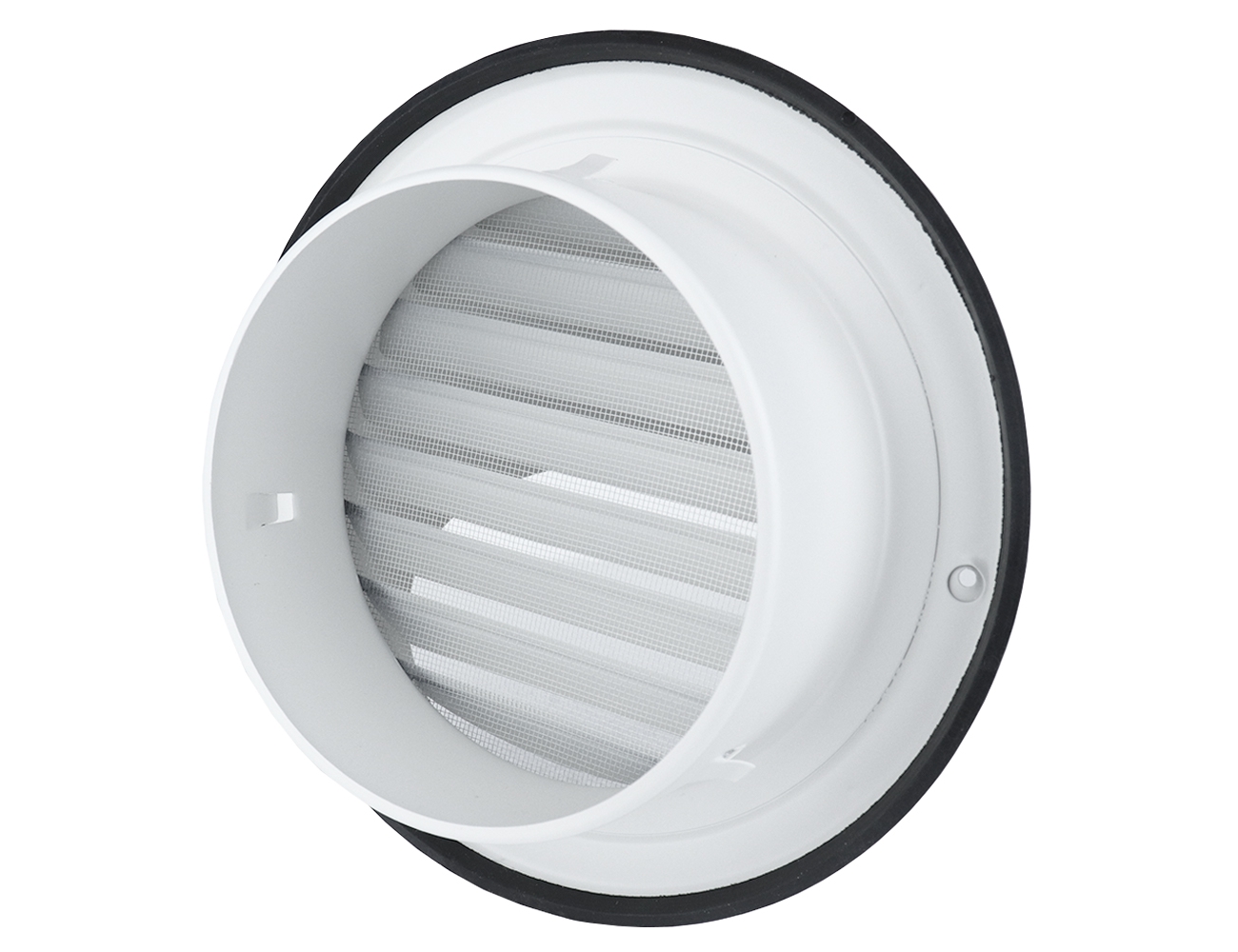 Tato větrací mřížka spojuje elegantní design a praktickou ochranu. Jemná **síťka proti hmyzu** zamezuje vniknutí drobných živočichů, listí i nečistot. **Stříška** a **okapnička** zabraňují zatečení vody i znečištění fasády mastnými výpary. Po obvodu je navíc **těsnící guma**, která zajistí úplné přilnutí mřížky k fasádě bez poškození omítky.
